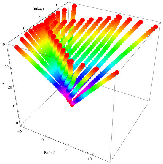 Furthermore, the 3D structure of zeros distributions of , for and are presented in Figure 7 and Figure 8, respectively.