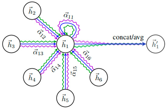 where —normalized attention coefficients computed by the -th attention engine (), and is the corresponding input linear transformation weight matrix.