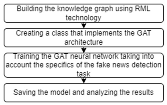 Thus, it can be concluded that the use of graph approaches can significantly improve the effectiveness of binary classification of news articles into fake and real. At the same time, the graph neural network with attention (GAT) has additional advantages due to the use of a graph approach and data structure [46,47].