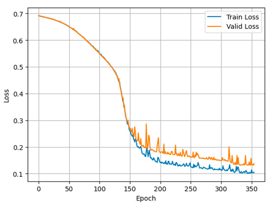 To speed up and effectively vectorize, training took place on the GPU. The Adaptive Moment Estimation (Adam) algorithm based on gradient descent was used as an optimizer. It has an adaptive learning rate, which means that the learning rate changes depending on the gradient. This allows us to ensure faster convergence to the optimal solution and avoid gradient decay. Binary Cross Entropy Loss (BCELoss) was chosen as the error function, which is one of the most common loss functions in binary classification problems. It is used to evaluate the performance of the model, which must determine whether the input object belongs to one of the two classes. BCELoss calculates the error between the model’s predicted values and the actual class labels. It applies to binary data, where each object can be assigned to only one of the two classes. The BCELoss function is differentiable, allowing the use of gradient descent-based optimizers for model training.