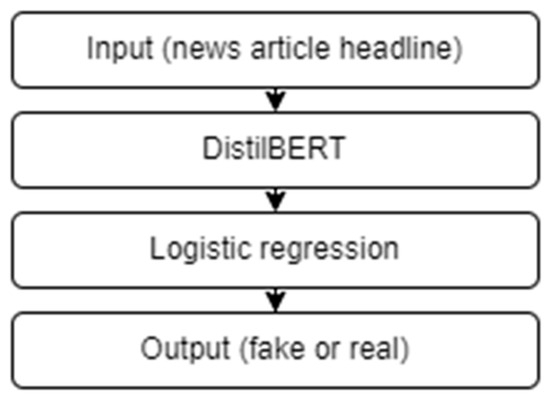 The block diagram of the algorithm for fake news detection based on DistilBERT language model.