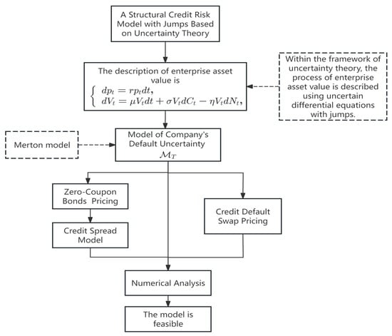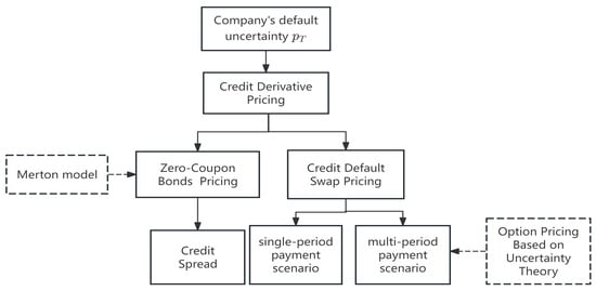 In this section, we build upon the structured credit risk model discussed previously and follow the theoretical framework of the Merton model to delve into the pricing of zero-coupon bonds and CDS under conditions of uncertainty. The specific research approach is illustrated in Figure 5.