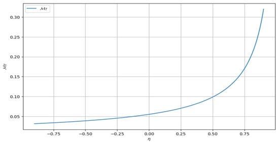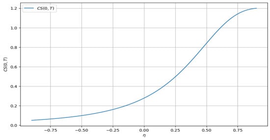 Assume an initial asset value , a drift rate , and a volatility , a risk-free interest rate , a default threshold , and the maturity time of the bond . The interarrival times of the renewal process are assumed to follow a log-normal distribution characterized by a mean and a volatility . The accompanying figure illustrates the variation in corporate credit spread as a function of the parameter η.