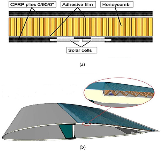 Figure 2a explores the integration of solar cells into the working skins of sandwich structures, as part of the Solar Impulse project, allowing the panels to fulfill both energy-harvesting and structural roles [10]. On the other hand, Figure 2b shows a sandwich structure, which is designed for boundary layer suction in a glider, enhancing its aerodynamic performance. These multifunctional approaches demonstrate how sandwich panels are evolving to meet diverse operational needs beyond their mechanical properties [10].