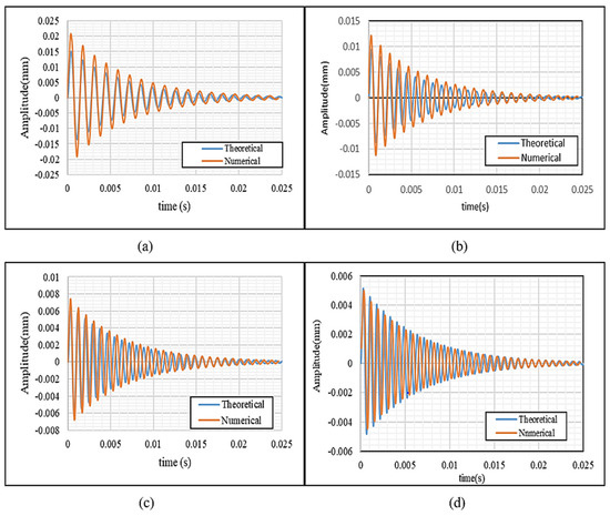 After deriving the equation of motion, the system’s free vibration response is evaluated. The natural frequencies of the sandwich structure are determined by solving the differential equation in the absence of external forces. These frequencies are critical as they define the inherent vibrational characteristics of the structure, which play a crucial role in its dynamic response to external excitations [16,17].