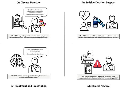 - Sutton, R.T.; Pincock, D.; Baumgart, D.C.; Sadowski, D.C.; Fedorak, R.N.; Kroeker, K.I. An Overview of Clinical Decision Support Systems: Benefits, Risks, and Strategies for Success. NPJ Digit. Med. 2020, 3, 17. [Google Scholar] [CrossRef] [PubMed]