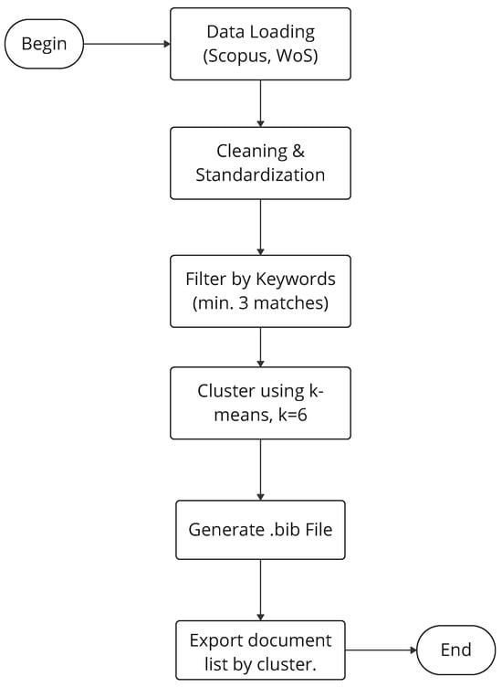 A supplementary step involved reviewing recent studies that employed systematic and machine learning-assisted techniques to enhance the scope and precision of the literature exploration []. These approaches—focused on automated text analysis, advanced bibliometric methods, and data-driven insights—have proven effective in extracting, categorizing, and synthesizing domain-specific knowledge, thereby reinforcing the robustness of the present methodology.