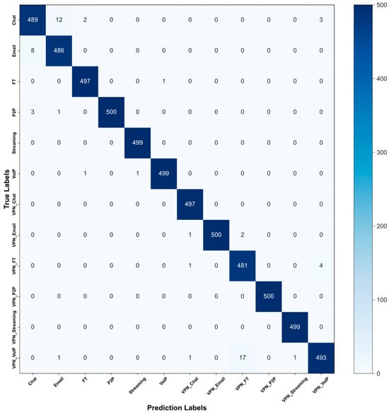Confusion matrix of the ISCX-VPN-Service dataset.