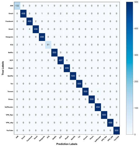 Confusion matrix of the ISCX-VPN-APP dataset.