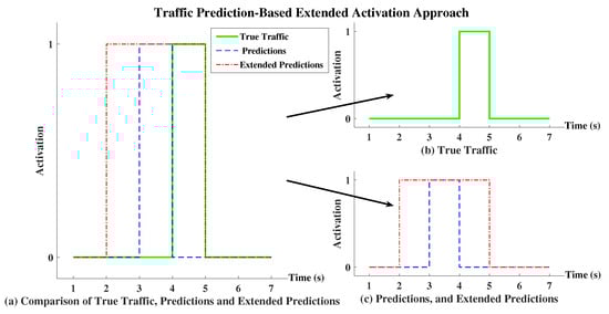 - (True extended prediction): Additional activations where the extended activation successfully captures actual traffic.