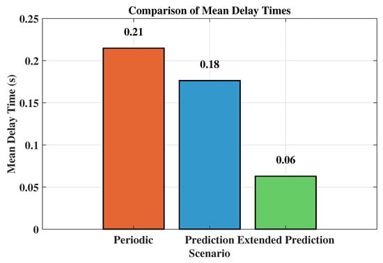 Comparison of mean delay times across periodic, prediction-based, and extended prediction-based C-DRX approaches.