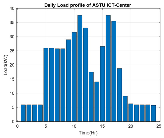 where represents the load power demand; and denote the efficiencies of the inverter and the battery, respectively; signifies the battery depth of discharge; and refers to the autonomy days, which is the duration (in days) for which the battery can sustain the load’s power demand before complete depletion.