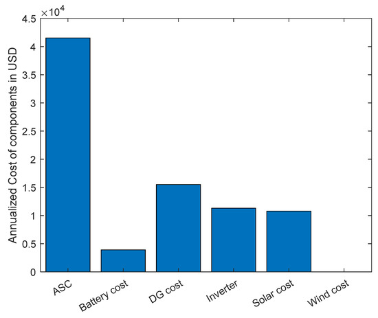 The total annualized system cost and individual component costs of a microgrid system are illustrated in Figure 14.