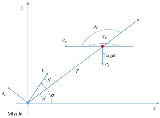 According to the missile–target relative motion relationship in Figure 1, the dynamic model of the missile terminal guidance phase is obtained as