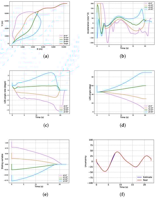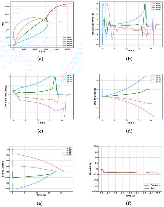 Let e be the LOS angle tracking error, and the LOS angle rate . Then, the LOS angle second-order dynamic error equation can be obtained as: