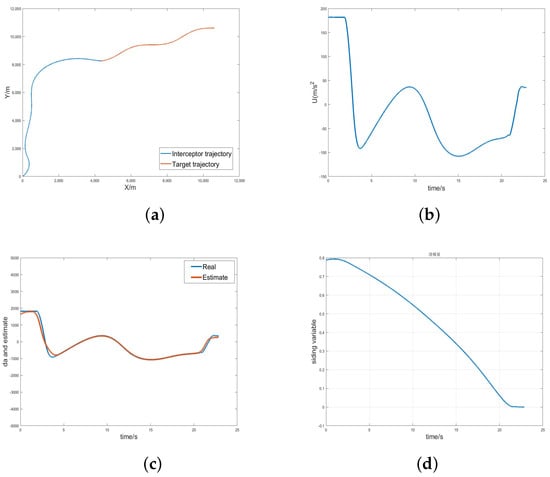 The stability of the autopilot component can be established by consulting reference [61], and a detailed analysis was not conducted. The autopilot parameters were . The design parameters for implementing guidance law (61) were set to and . The parameters of the ESOs were selected as .