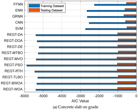 This section elaborates on the multiple statistical metrics used to explore the predictive power of the investigated deterioration models. Nine key indicators are adopted to estimate the deterioration models’ performance: (1) mean absolute error, (2) mean absolute percentage error, (3) root mean squared percentage error, (4) root mean squared error, (5) normalized root mean squared error, (6) uncertainty at 95% “U95%”, (7) objective function “OBJ” criterion, (8) Akaike information criterion “AIC”, and (9) performance strength criterion “PSC”. Lower values of MAE, MAPE, RMSPE, RMSE, NRMSE, OBJ, U95, and AIC indicate a higher precision of the deterioration model. However, larger values of PSC depict a better level of performance of the model. OBJ value takes into consideration the statistical parameters of MAE and R2 for the training and testing subsets [98]. The ideal PSC value is 1, and the model with a PSC value closest to 1 is generally considered the best-performing model [99]. AIC is utilized to study the generalization capabilities of the suggested data-driven models, and it strives to find the optimal tradeoff between the model’s complexity and accuracy [100,101]. The following equations (Equations (22)–(30)) represent the formulas for computing these indicators [98,99,100,102,103,104,105,106].