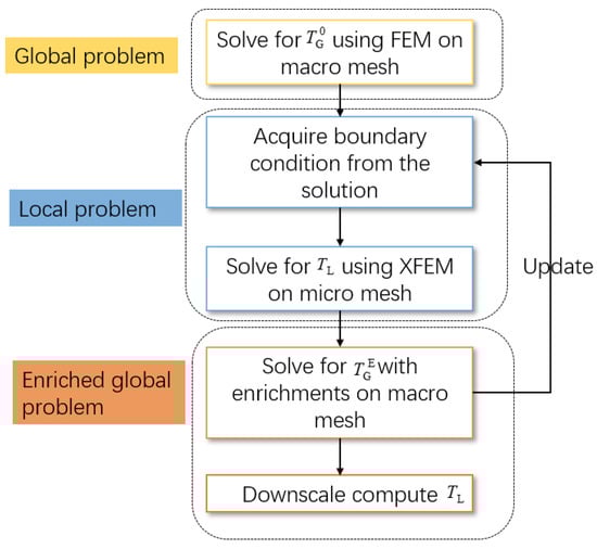 A flowchart of the presented multiscale method combining GFEMgl and XFEM.