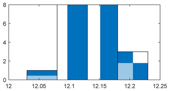 To investigate the influence of the randomness of the inclusion distribution, an inclusion configuration similar to that shown in Figure 10 was randomly generated 20 times, and the ETC was calculated for each configuration test. A histogram of the estimated ETC for these tests is depicted in Figure 11. The obtained ETC values had a small range of 12.05–12.20 kJ/(m·h·°C), and the variance of these 20 data was 0.0012 kJ/(m·h·°C). These results suggest that the randomness of the inclusion distribution has a minor influence on the overall thermal properties of a composite.