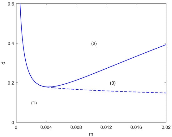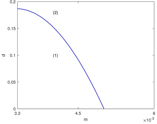 Since is required to be positive, the Hopf conditions (Equations (31) and (32)) are reduced to