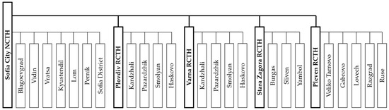 As we noted in Section 2.3 and in Figure 2, the Bulgarian system of transfusion haematology is subdivided into 1 National and 4 Regional Centres, with 23 other District Units (DUs) operating within their structures (Sofia City NCTH with 7 DUs, Plovdiv RCTH with 4 DUs, Varna RCTH with 4 DUs, Stara Zagora RCTH with 3 DUs, and Pleven RCTH with 5 DUs).