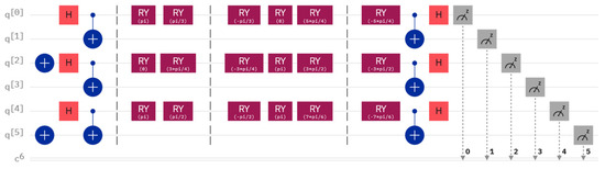 Here, qubits q[0] and q[1] are used to generate , q[2] and q[3] for q[4] and q[5] for .