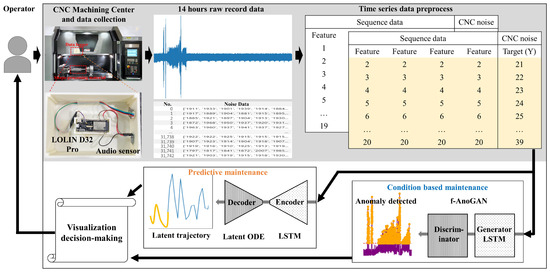 To address these issues, this study proposes the following innovative approaches: An AI-based predictive maintenance framework was developed to enhance the reliability and operational efficiency of CNC machining centers. An LSTM+latent ODE [