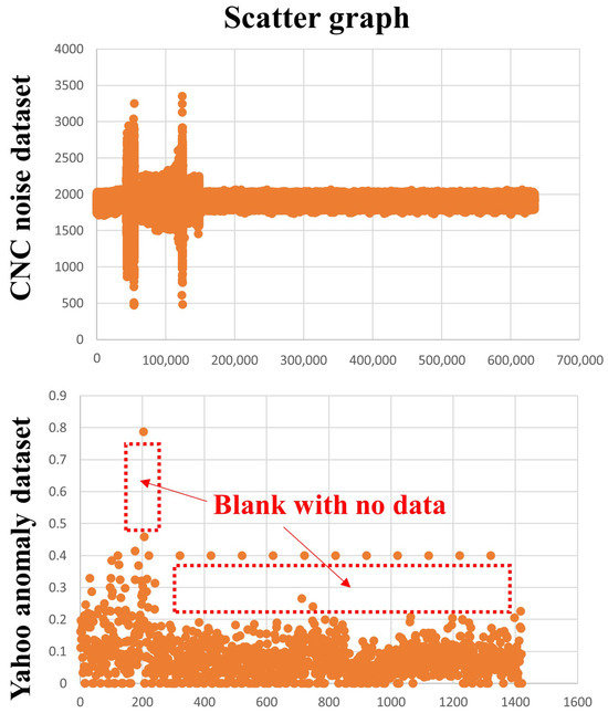 Both datasets demonstrated the effective anomaly detection capability of the f-AnoGAN and LSTM models. The threshold-based anomaly detection approach performed well in identifying outliers. In the CNC Noise Dataset, anomalies were primarily concentrated in specific segments, while the Yahoo Anomaly Dataset showed dispersed anomalies. These results reflect differences in the datasets’ characteristics and the underlying causes of anomalies. Moreover, they highlight the model’s adaptability to various datasets, showcasing its potential for flexible application.