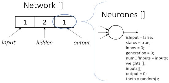 - Stanley, K.O.; Miikkulainen, R. Evolving Neural Networks through Augmenting Topologies. Evol. Comput. 2002, 10, 99–127. [Google Scholar]