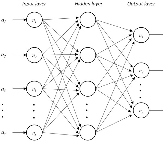 To begin, the initial structure of the Artificial Neural Network (ANN) was developed using the following parameters: learning rate of 0.3, momentum of 0.2, and 500 iterations. The basic architecture consists of an input layer with x neurons, where x represents the number of attributes in the dataset, a hidden layer with the same number of neurons as the input layer, and an output layer with y neurons, where y corresponds to the number of classes in the dataset (Figure 4).