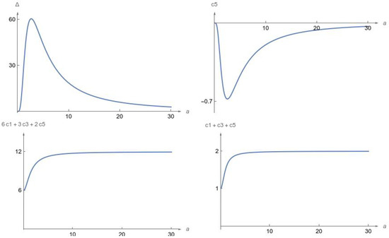 At this point, based on coefficients and using (14), we form the discriminant of the second-order polynomial and find that hypothesis (17) of Theorem 1 holds for the quinticate oscillators under study. This is shown in Figure 2 and Figure 3.