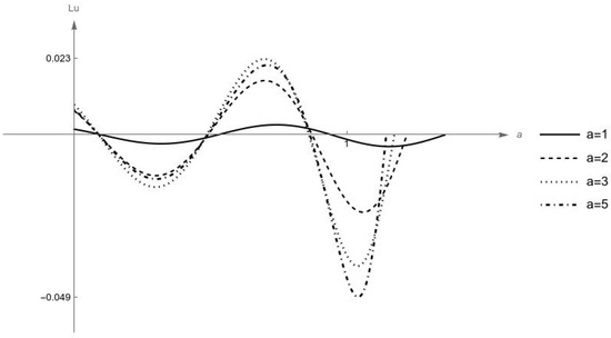 Figure 4 shows a graph of the differential operator (30) applied to the quinticate oscillator associated with oscillator (1)–(2), at initial displacements In a similar way, Figure 5 plots the operator (30) for the quinticate form of oscillator (1)–(3), again at initial displacements