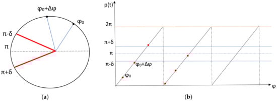 The movement of the particle is discrete; i.e., the position of the particle has a constant increment every next time , where we require . Hence, the angle is changed with time as