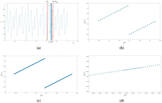 where . The direct calculation reveals that the point is located within the same interval as the point . Hence, the point is another generating point according to the definition (22).