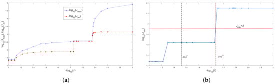 where , i.e., for . We will also refer to the length given by (20) as the generating length. It is clear from the above discussion that the entire graph in Figure 4 is produced by a single generating point , where we have . Given the point , all the points in the graph in Figure 4 can be calculated using the expressions (19) and (21) first (see the closed red circles in Figure 4b) and then applying (17) and (18).