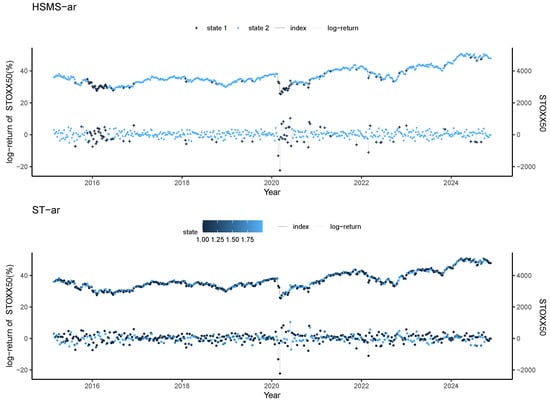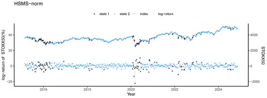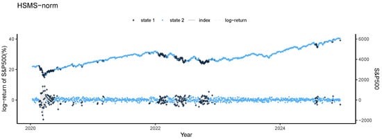 Ferguson [5] pointed out that speech recognition is one of the earliest and most successful implementations of HSMS. Over time, this approach has been extended to different domains, including the recognition of printed text, handwriting, human DNA sequences, film events, symbolic plan, and language. Its versatility has also inspired many other applications, such as ground target tracking, mobility tracking in cellular networks, protein structure prediction, air particle prediction, speech synthesis, music classification, image segmentation, electrocardiogram segmentation, and financial time series modeling. Yu [60] gave an overview of these applications, while Balcilar et al. [61] used the HSMS model to study various stages of human information processing. Based on the HSMS framework, Xiao and Dong [62] introduced an innovative reputation management system for the online-to-offline (O2O) e-commerce market. There are also some applications of the HSMS model in the financial field. Bernardi et al. [63] constructed an HSMS model with Student-t distribution for tail risk interdependence. Maruotti et al. [59] introduced an HSMS model with a multivariate leptokurtic-normal distribution. Maruotti et al. [57] combined the HSMS model with quantile regression for time series. Qin et al. [64] proposed a robust HSMS model with Huber’s least favorable distribution.