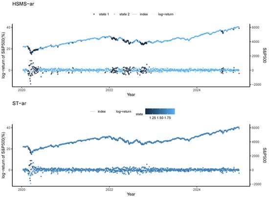 If we use the regime switching AR(1) model (Equation (3) with ) as the state-dependent model, the conditional likelihood function in Equation (6) is expressed as follows: