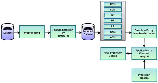 - Development of a Choquet Fuzzy Integral-based Ensemble Classifier: A novel ensemble method is introduced to optimally aggregate multiple ML models, leveraging the Choquet integral’s ability to consider interdependencies among classifiers, thereby enhancing predictive accuracy and robustness [].
