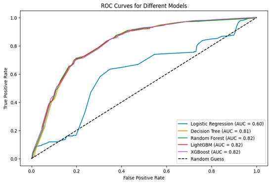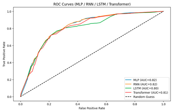 The experimental results indicated that LightGBM achieved the highest overall performance, with an Accuracy of 0.7666, F1-score of 0.7555, and AUC of 0.8191. In comparison, neural-network-based methods, including RNNs (Accuracy: 0.7602, AUC: 0.8176), LSTM (Accuracy: 0.7596, AUC: 0.7995), and Transformers (Accuracy: 0.7602, AUC: 0.8073), showed a comparable but slightly lower predictive performance. Additionally, neural network methods required significantly longer training times. For example, the Transformer model required approximately 391 s for training, whereas LightGBM only required approximately 0.041 s, demonstrating a substantial efficiency advantage.