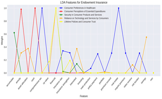 LDA analysis results: key features by insurance type (endowment insurance).