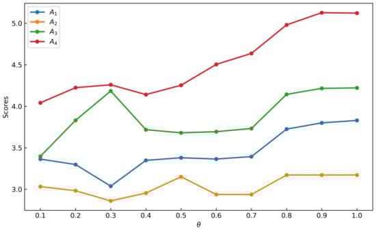 We conducted numerical experiments using 100 evaluators (Scenario 3) with the traditional HFS-based method. The initial consensus obtained is , which is less than the consensus threshold, triggering a CRP. After two rounds of iteration, the decision group reached full consensus with a final consensus degree of . The ranking result is generated as . Compared with the ranking result obtained by the proposed method (), we can see that the final outcomes obtained by the two methods are not the same. The cause of this phenomenon is summarized as follows: