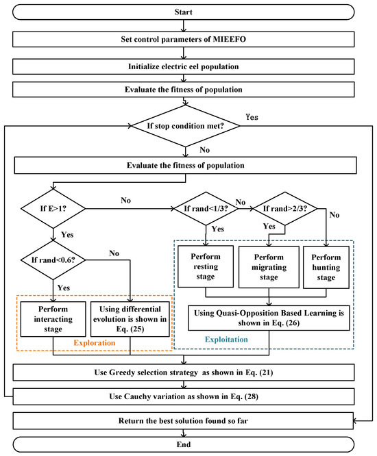 i. This paper proposes an improved Electric Eel Foraging Optimization, which incorporates a differential evolution strategy, a quasi-oppositional learning strategy and the Cauchy mutation strategy, named MIEEFO.