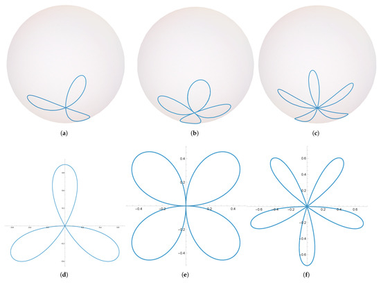 where is given by Equation (7) and is given by Equations (3) and (9). A solution curve with n leaves is determined by solving the equation . An example with is shown in Figure 1.