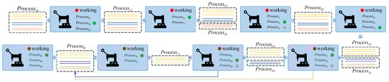 Cable scheduling methodology, which aims to properly plan the manufacturing process of cables using a reasonable and appropriate method to enhance processing efficiency and reduce the unnecessary waste of resources, can be categorized as a manufacturing shop scheduling problem. The scheduling problem in which processes can be processed on multiple machines was first proposed by Arthanari [13] and Salvador [14] in the 1970s, which marked the beginning of the study of flexible flow shop scheduling problems. Babayan [12] studied a two-phase flexible flow shop scheduling problem considering delayed product variance, where the first phase has only one machine and the second phase has multiple identical parallel machines. Schulz et al. [15] proposed a modified multiphase iterative local search algorithm to solve the k-phase hybrid flow shop scheduling problem.