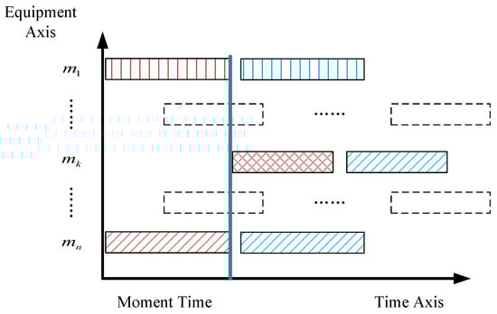 As a classical combinatorial optimization problem, the solution steps of the production scheduling problem will be extremely cumbersome due to the increase in the problem size, and the computational workload of solving the optimal solution will also increase exponentially [9]. With the order-based production of multi-species, variable batch and small batch mixed-flow production modes have gradually become widely adopted, and enterprise parallel and serial engineering exist in large quantities, so that enterprise production planning and scheduling work has become more complex [10,11]. In addition, due to the large increase in various random disturbing factors and the existence of complex special circumstances at the production site, such as machine failures, order batch insertion, temporary adjustments of the production plan, etc., the actual production needs to change again and again [12].