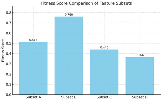 Here, represents the classification error of the feature subset assessed using the CNN classifier, is the number of selected features, and indicates the total number of features prior to selection. E max represents the maximum permissible error (i.e., 1.0), utilized for normalization purposes. The parameter serves as a weighting factor that regulates the equilibrium between classification accuracy and feature compactness. In our trials, we established to emphasize classification efficacy while simultaneously promoting dimensionality reduction. The optimization procedure seeks to decrease this fitness function. Subsets that produce reduced classification error and fewer features will result in a diminished fitness value, hence being preferred by the mGWO algorithm. Figure 6 illustrate the trade-off between accuracy and feature count during optimization.