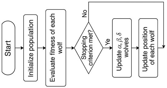 The hunting phase ends when the prey stops moving, and the wolves start attacking. This is carried out because the value of will begin to drop in the subsequent iterations; also controls how grey wolves explore and exploit their prey. Exploration takes up about half of the iterations with a seamless transition, while exploitation takes up the other half. Wolves randomly switch between their current location and the position of the prey. This approach randomly creates wolves in the search space. Wolf positions are determined by the objective function. The steps are repeated until the halting condition or preset number of iterations is reached. In each iteration, x, y, and z are the first three wolves with the best fitness. The wolves adjust their positions based on the earlier hunting, attacking, and encircling steps. Consequently, the optimal prey location, the x’s position, can be identified.