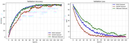 Comparison of validation accuracy and loss across three selected datasets.