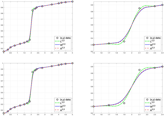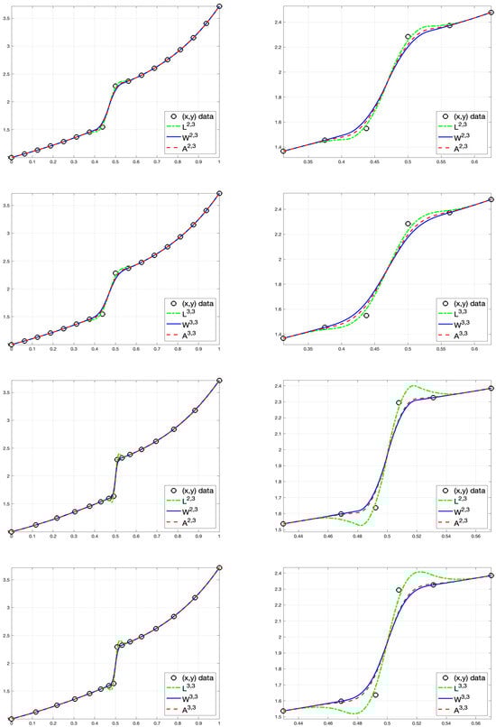 - Aràndiga, F.; Donat, R.; López-Ureña, S. Nonlinear improvements of quasi-interpolant splines to approximate piecewise smooth functions. Appl. Math. Comp. 2023, 448, 127946. [Google Scholar] [CrossRef]