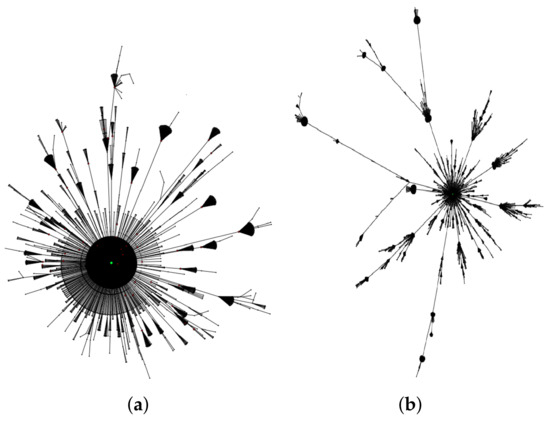 In the utilization of the information propagation model for propagation experiments, nodes with distinct centrality of penetration are chosen as the starting nodes for experimentation, thereby generating multiple propagation cascades. Although these cascades adopt a tree-like structure, discernible disparities persist among them. As illustrated in Figure 3, the depicted propagation cascades originate from two different initial nodes within the same social network. In the left figure, the entry centrality value of the information propagation starting node stands at 0.591, while in the right figure, it is 0.033.